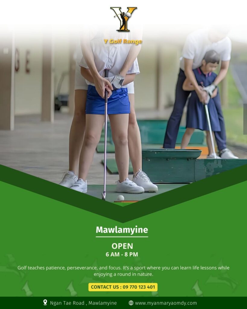 Y Golf Range is a modern golf practice facility and dining destination located in Mawlamyine, Mon State. The venue offers a comfortable and professional environment for golfers of all skill levels, from beginners to experienced players.